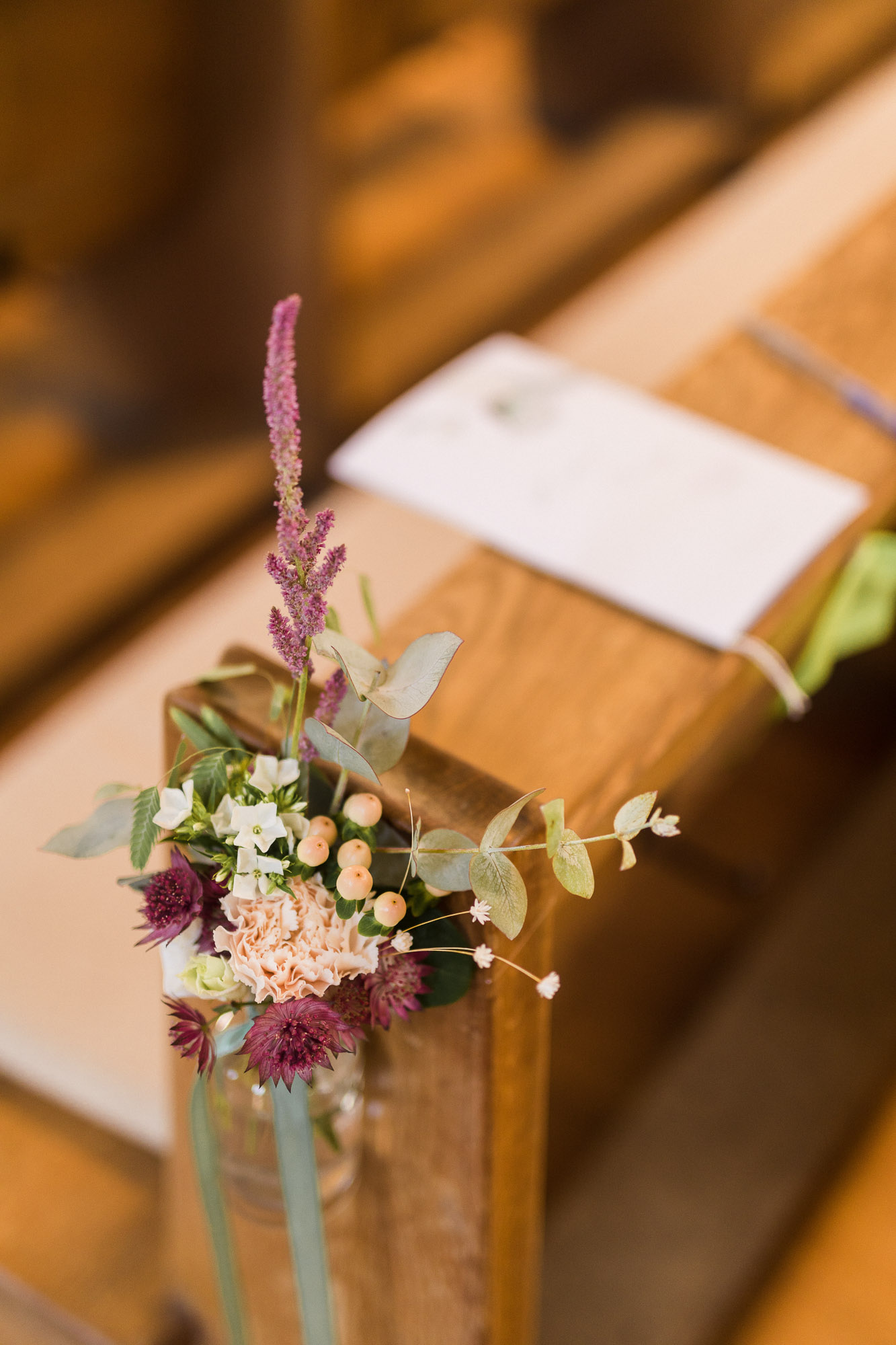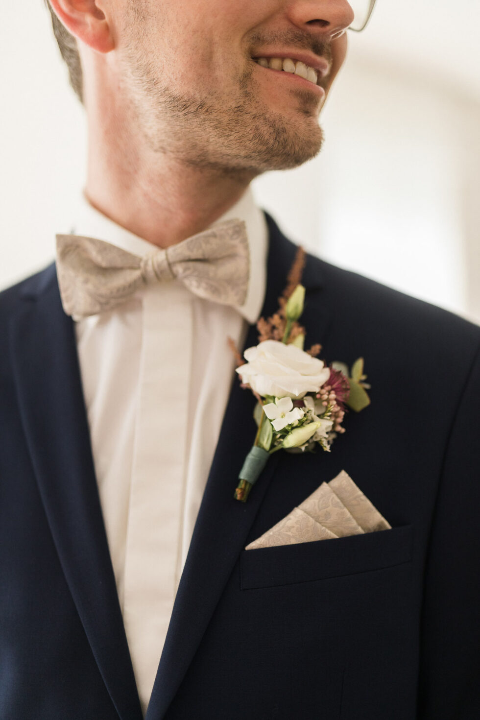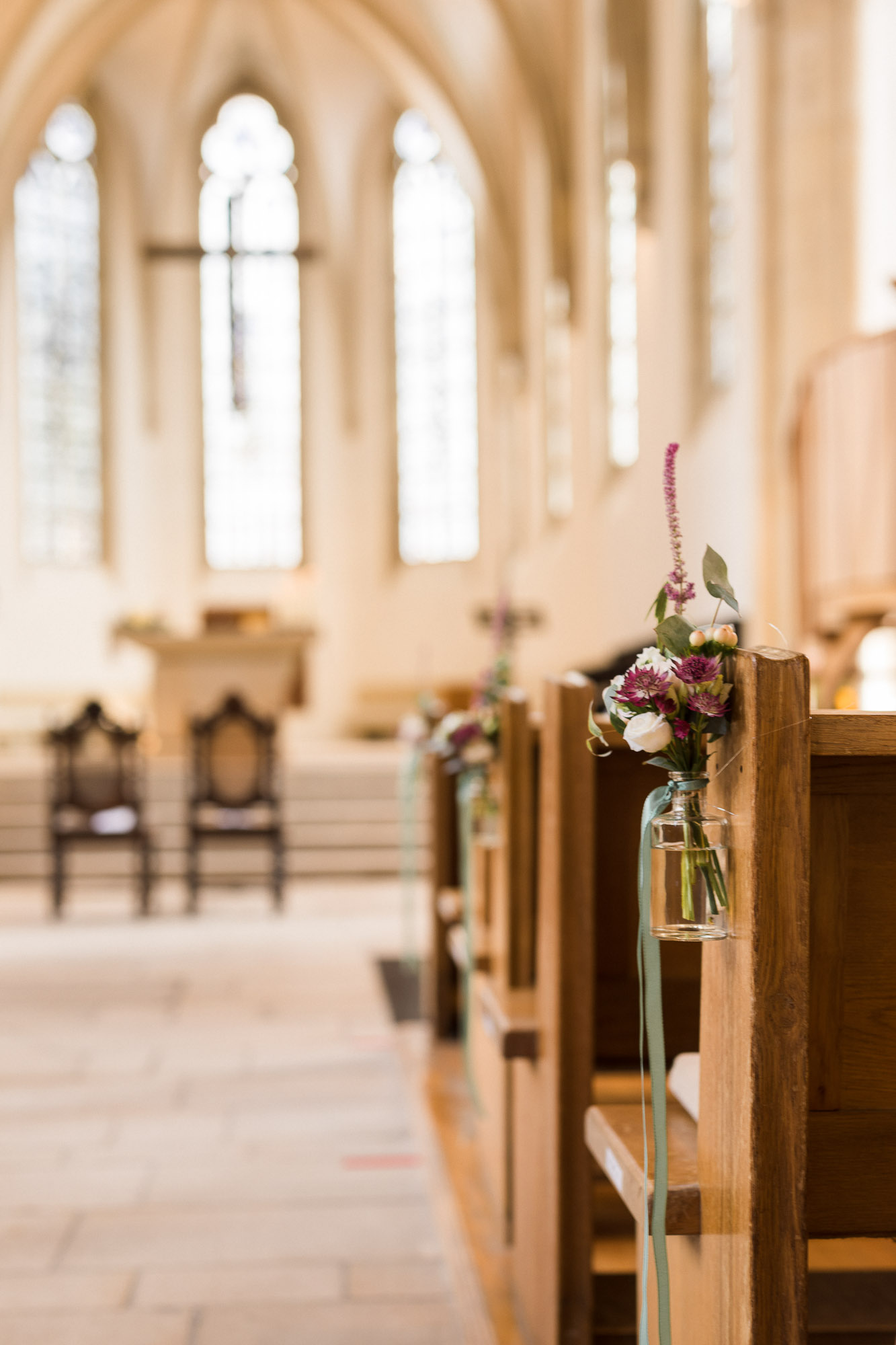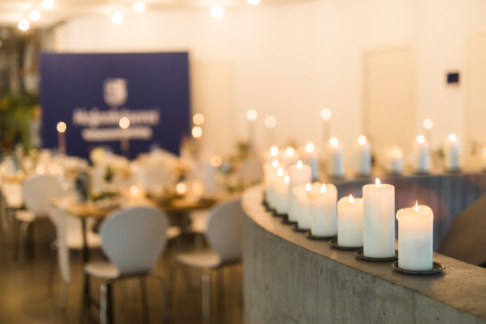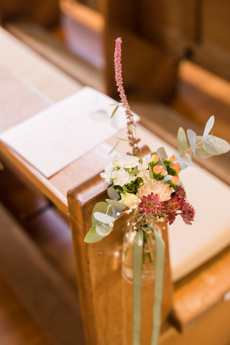Die Dekoration bestach durch Natürlichkeit. Eukalyptuszweige zierten die Tische und schufen eine frische, luftige Atmosphäre. Helle Blumen, die in zarten Farben mit vereinzelten Farbtupfern in einem kräftigen Magentaton um die Wette strahlten, griffen den Look des Festsaals super auf. Unsere Kerzenhalter Konny in Gold sorgten für einen Hauch von Eleganz ohne Aufdringlich zu wirken.