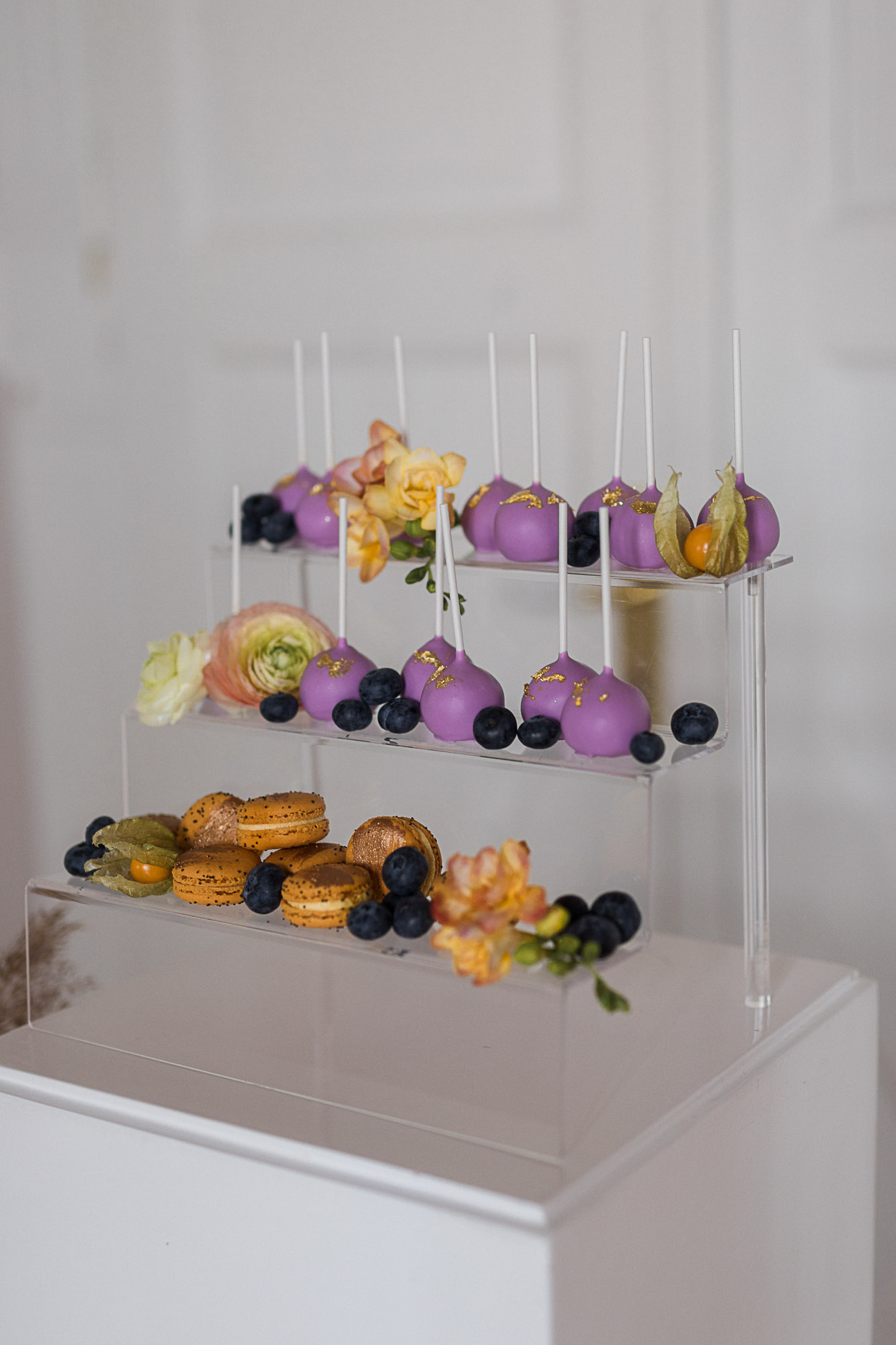 Das Display aus Acryl präsentiert kleine Sweets wunderschön elegant.
