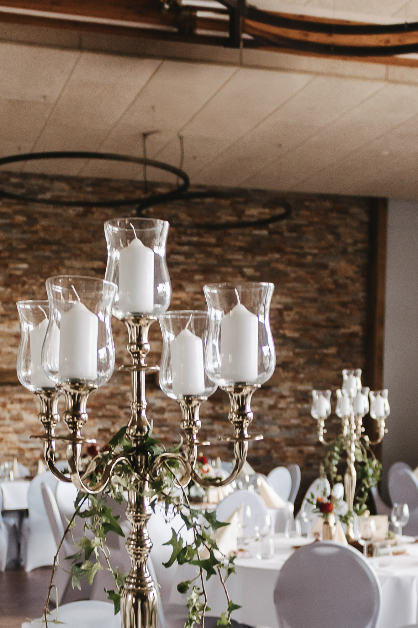 Windlichtglas Wenke kannst du für Kerzenleuchter Klara mieten, um Stumpenkerzen zu nutzen.