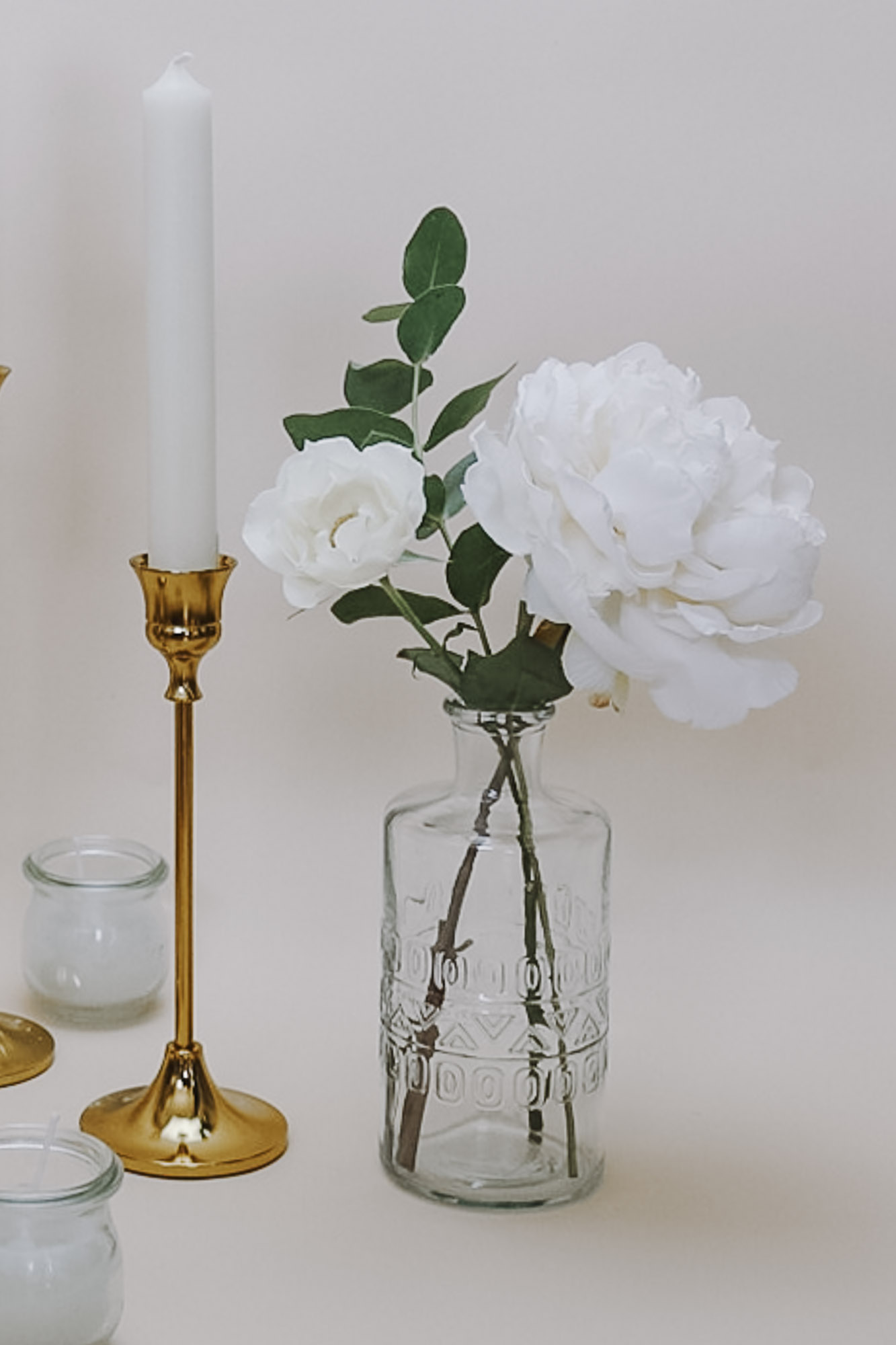 Klare Glasvase mit zartem Reliefmuster.