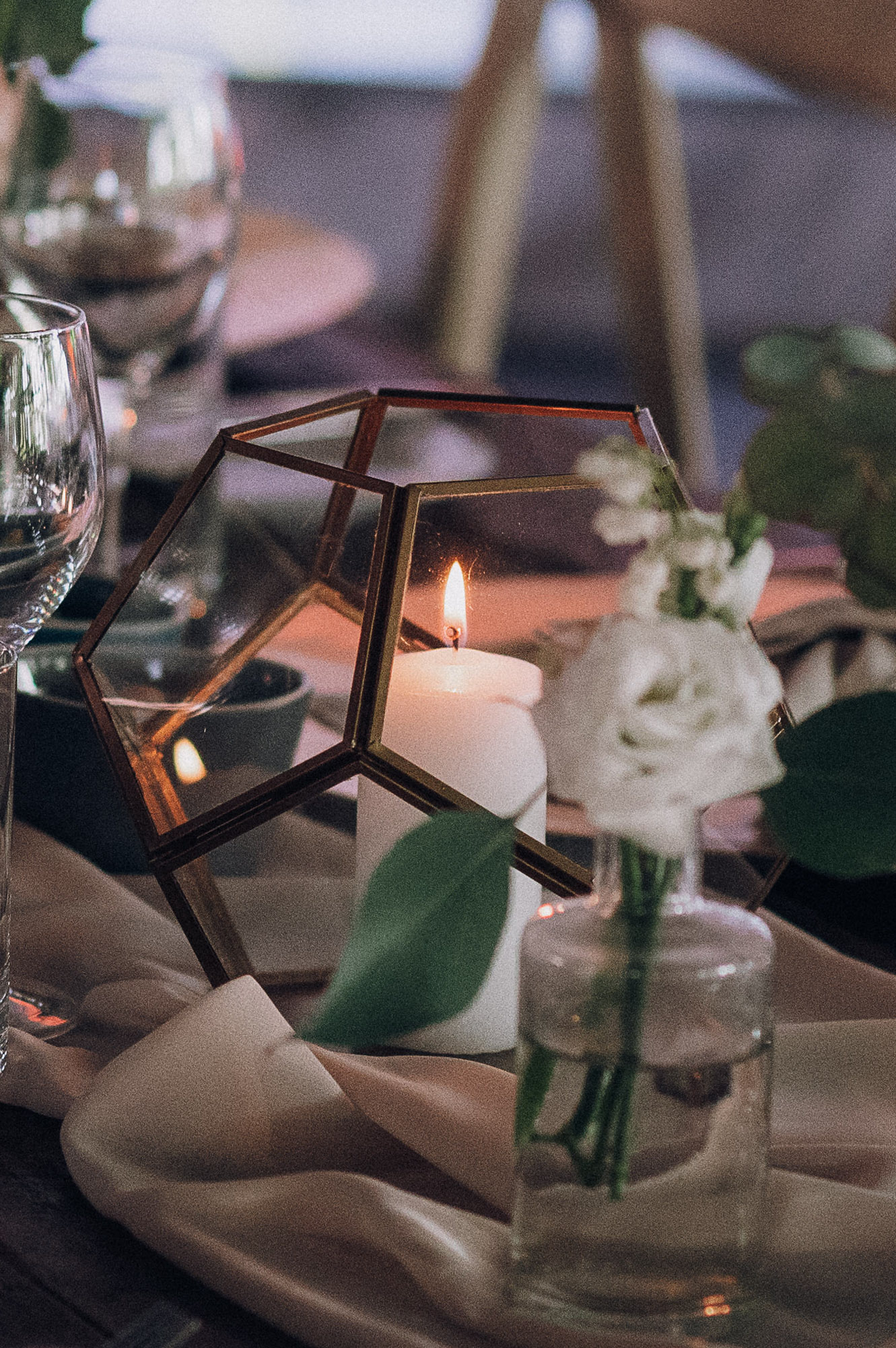 Besonders schön wirkt sie mit weißen Kerzen – so kommt das geometrische Muster perfekt zur Geltung.